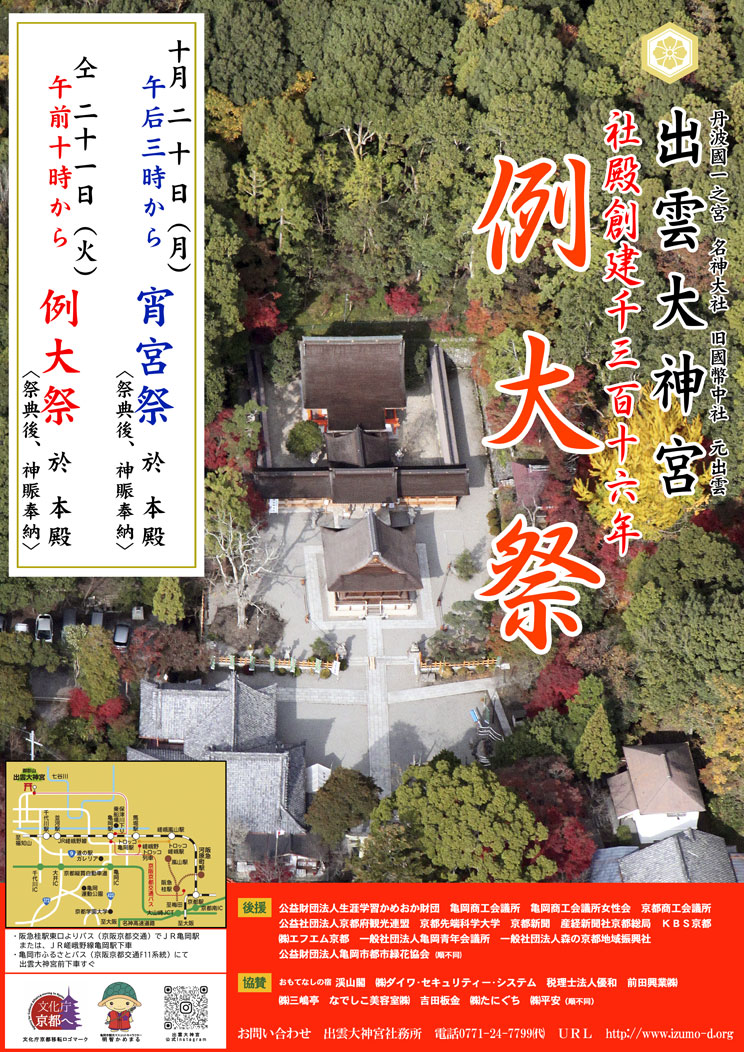 社殿創建が和銅2年10月21日と伝えられており、この日を以って例祭斎行の日と致しております。